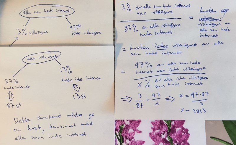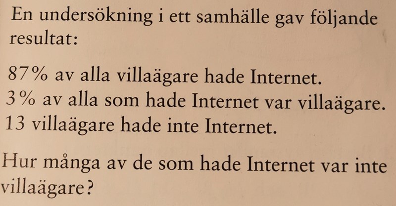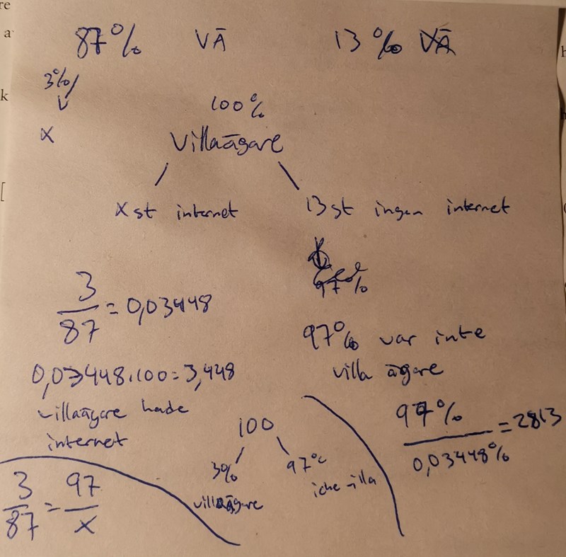 Antalet villaägare som hade internet var alltså 0,87*100 = 87.