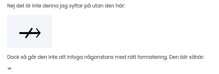 Dock så går den inte att infoga någonstans med rätt formatering. Den blir såhär: