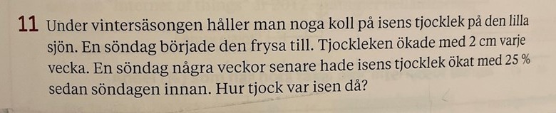 Dvs 0,25x = 2; x = 8 och svaret 10 cm (efter den 25-procentiga tillväxten).