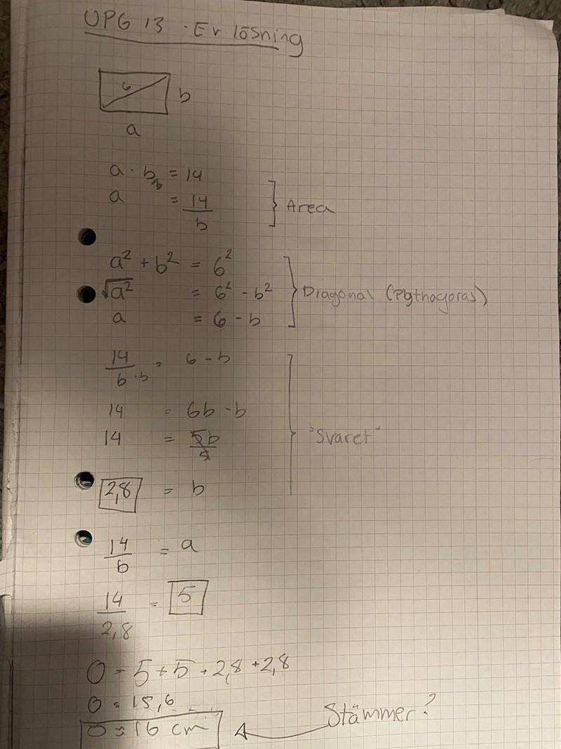 Kika gärna på min lösning (slarvig och mycket anteckningar men tror det ska gå att läsa) och se om jag överhuvudtaget är på rätt väg…