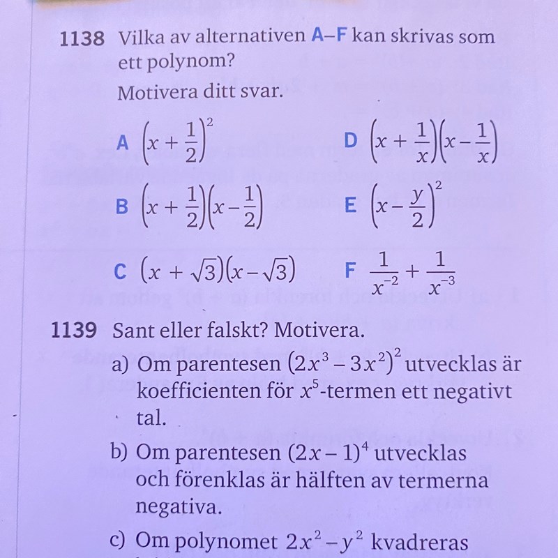 Upp 1138 vilka är polynom
