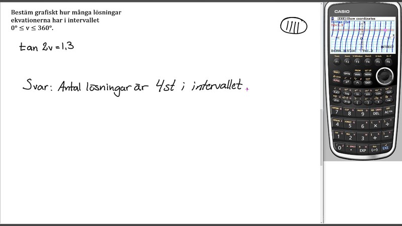 Här ser vi att vi får 4 skärningspunkter. Vad dessa är är ointressant, de frågar bara efter antalet.