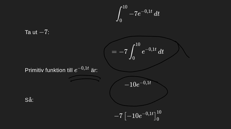 Derivatan av är . Så när vi integrerar dividerar vi med -0.1 istället, vilket är samma som att multiplicera med -10.0.