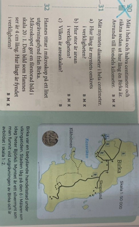 31 c) Areaskalan är nog 1:4 (längdskala)²