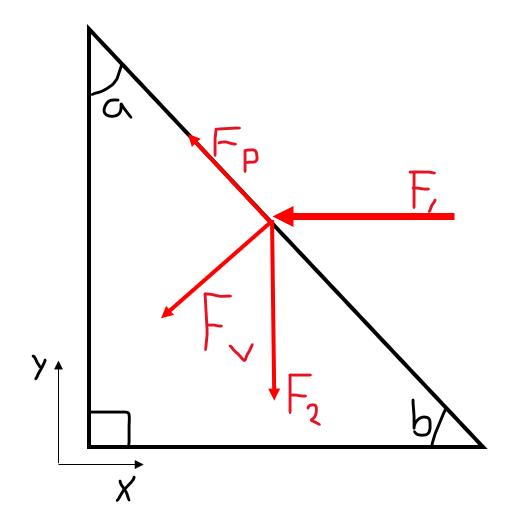 Hej! Kliar mig i huvudet lite med denna. Jag har en given kraft F1 som agerar på en vinklad yta med vinklarna a och b. Uppgiften går ut på att få fram kraften F2 vid olika vinklar.