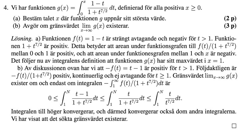 MrPotatohead skrev:Integralen är inte generaliserad någonstans och kommer därför automatiskt konvergera. Det är egentligen bara för generaliserade integraler man talar om konvergens och divergens.