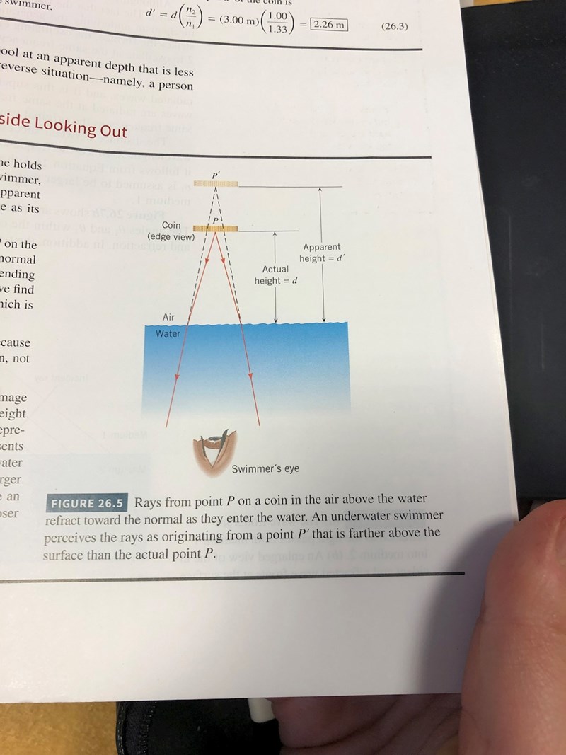 Är det möjligtvis för att brytningsindexet för vatten är 4/3 och då upplevs avståndet annourlunda så att vi måste ta det inverterade bråket för att få det verkliga avståndet? Tänker jag rätt då?