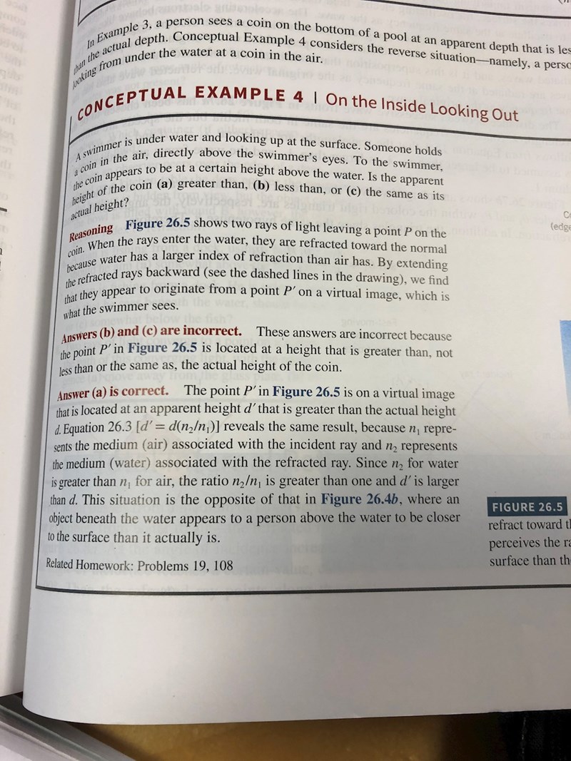 Tänk på att avståndet genom luften förändras inte när mannen tittar på fisken och avståndet genom vattnet förändras inte när fisken tittar på mannen.