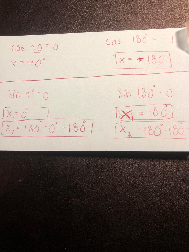 Cos 90 grader= 0 Och cos 180 grader= 0