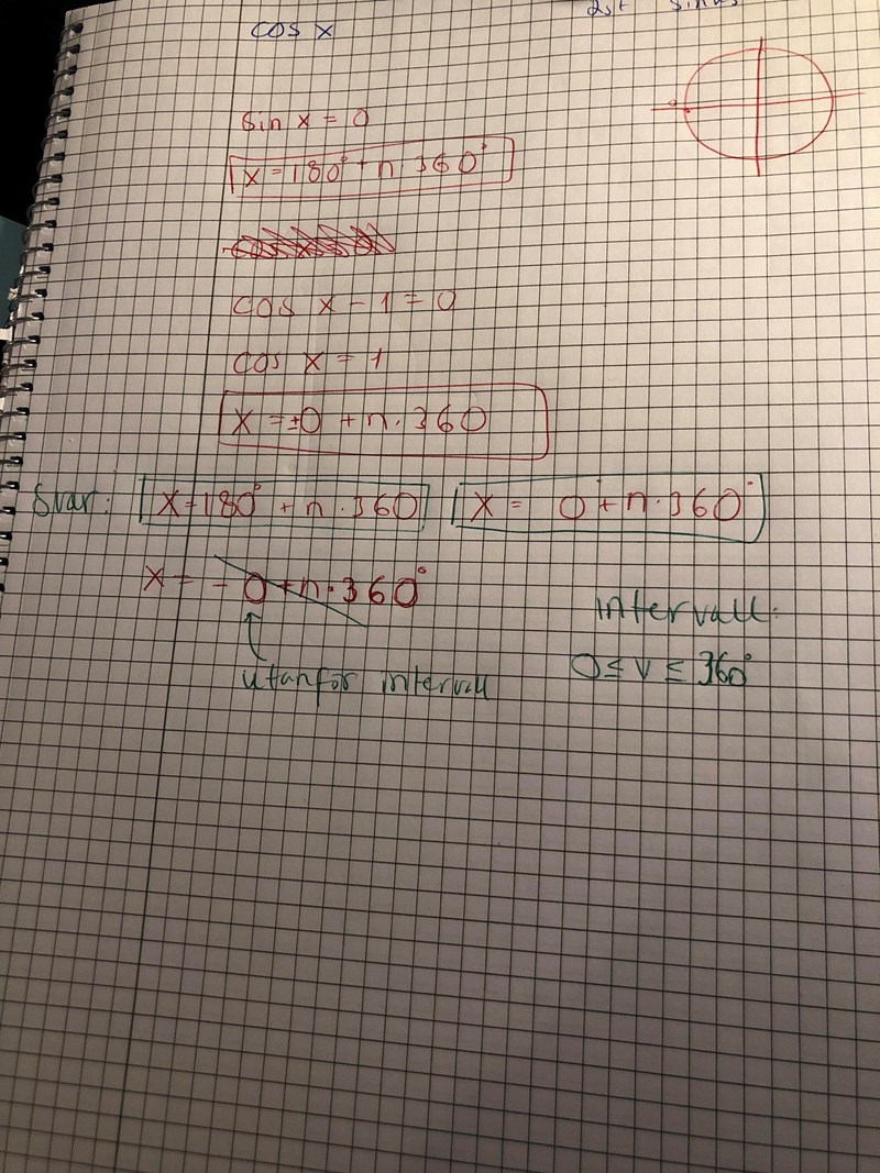 Men noll i cos o sin blir väl också 0 i enhetscirkeln?