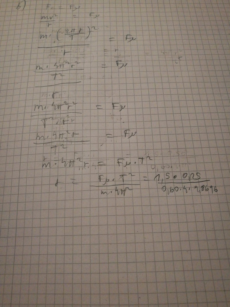 Ja men varför blir det fel när jag löser tex a) som m*4pi*r/T = Fc