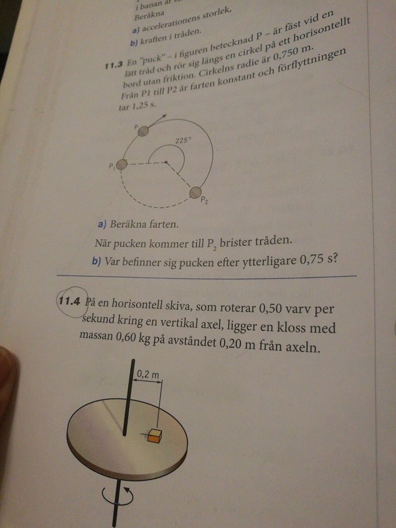 I facit är tiden 2,0 och jag förstår ej varför det är så? Omloppstiden T för 0,50 varv är ju 1s eftersom det är 0,50/s. Jag tänker typ att om radien ska bli större då blir det 2 s på ett varv men i a) så är ju T =0,50 vilket jag ej begriper. Tiden bör väl vara 1 s för att ett 0,50 varv?