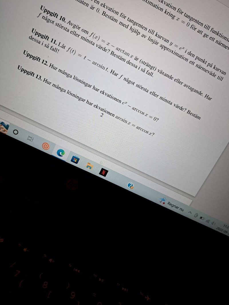 Jag vet ej hur jag ska börja på 12an , jag vet att definition mängden för arccosx är [-1,1]