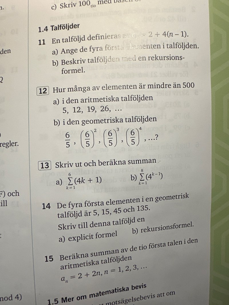 För den formlen som jag skrev fungerar om man vill veta något tal i talföljden men jag förstår inte varför dom gjort som som gjort i facit