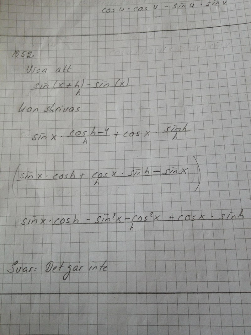 Tänk att det finns sin x och h med. Cos x och h