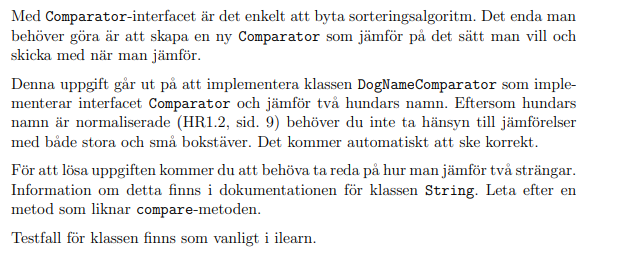 Uppgift 2.2 Hundregister Comparator String