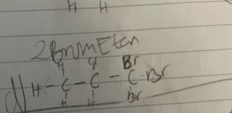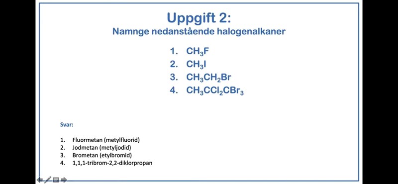 Hej! Jag har försökt att rita upp halogenalkanen den på nummer 4. Men svaret jag fick blev fel. Jag fick svaret 2bromEtan