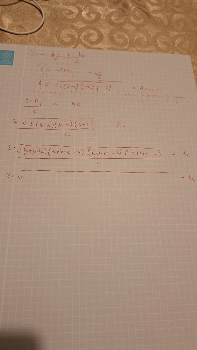 Mogens skrev:Det luktar Herons formel för arean av en triangel.