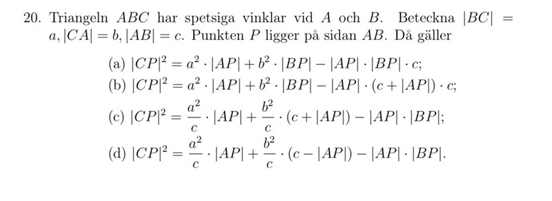 Och jag håller med om att detta är en uppgift där man bör prova sig fram i ”enkla” trianglar. Jag bjuder på en som åtminstone kan användas för att utesluta några alternativ (har inte provat alla):