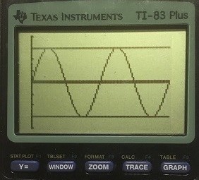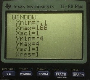 Om vi knappar in 3sin(4X) i räknaren så ser vi att y<3 och y>-3