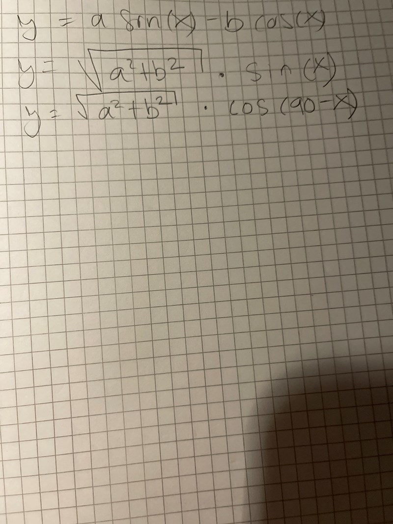 sqrt(a2+b2) • sin(90-(x+arctan(b/a))
