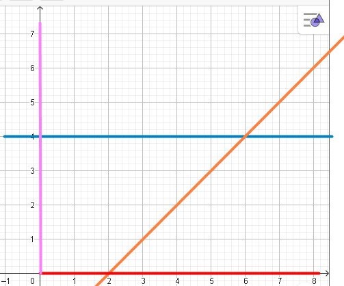 Kunskap är makt skrev:de positiva koordinataxlarna, linjen y= x-2 och linjen y= 4.