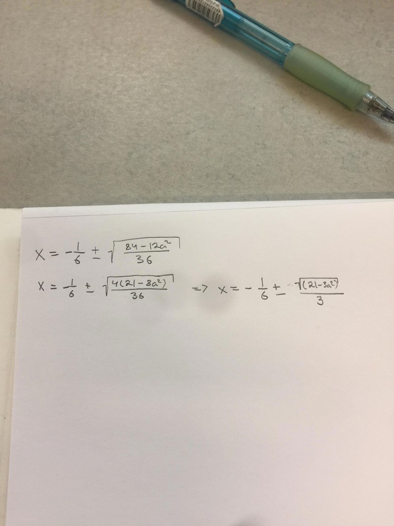 85 - 12a2 = 36, 85 - 36 = 12a2 => a = sqrt((85 - 36)/12))