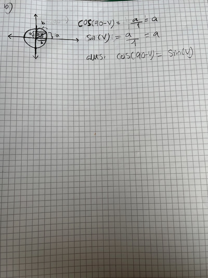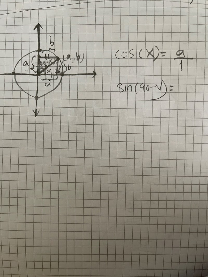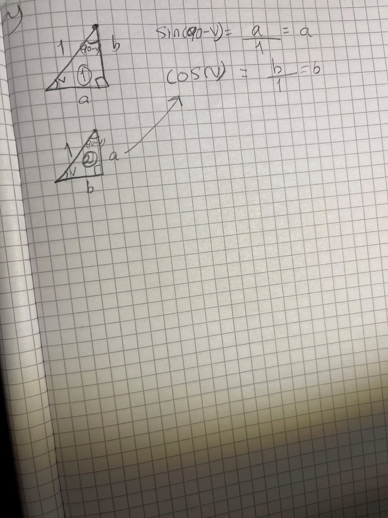sin(90-v) = a / 1 = a (90-v är vinkeln mellan hypotenusan och y-axeln)