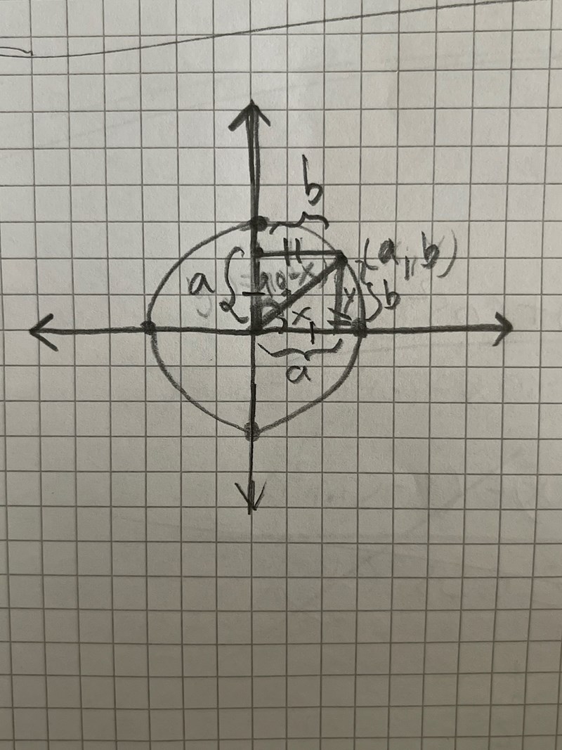 Menar du att a är x axeln och 1 är hypotenusan för det är en enhetscirkeln med radien 1?