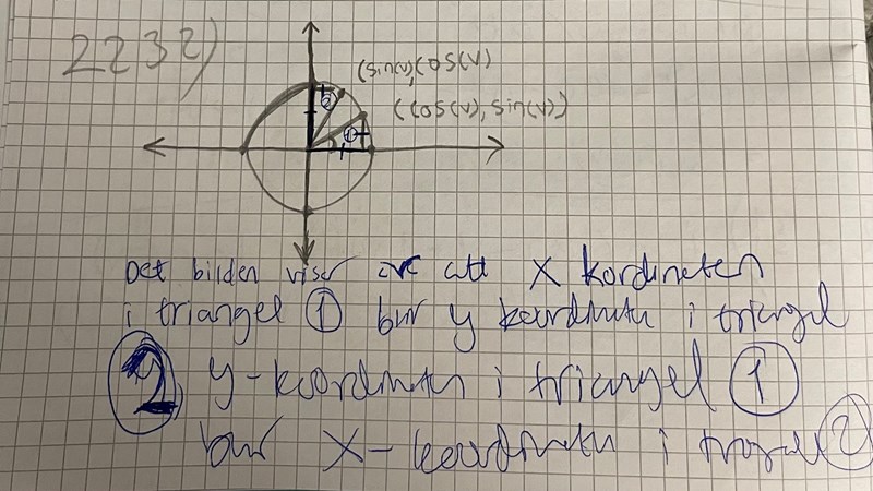 Jag förstår inte vad du menar? Jag har ju visat med hjälp enhetscirkeln att det bildas två olika trianglar. Hur kan jag istället rita bilden?