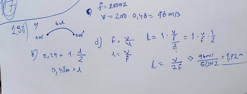 Hej. Jag undrar varför man ska dela längden på strängen med 2 i d frågan, dvs varför ska man ta 1.96m/2?