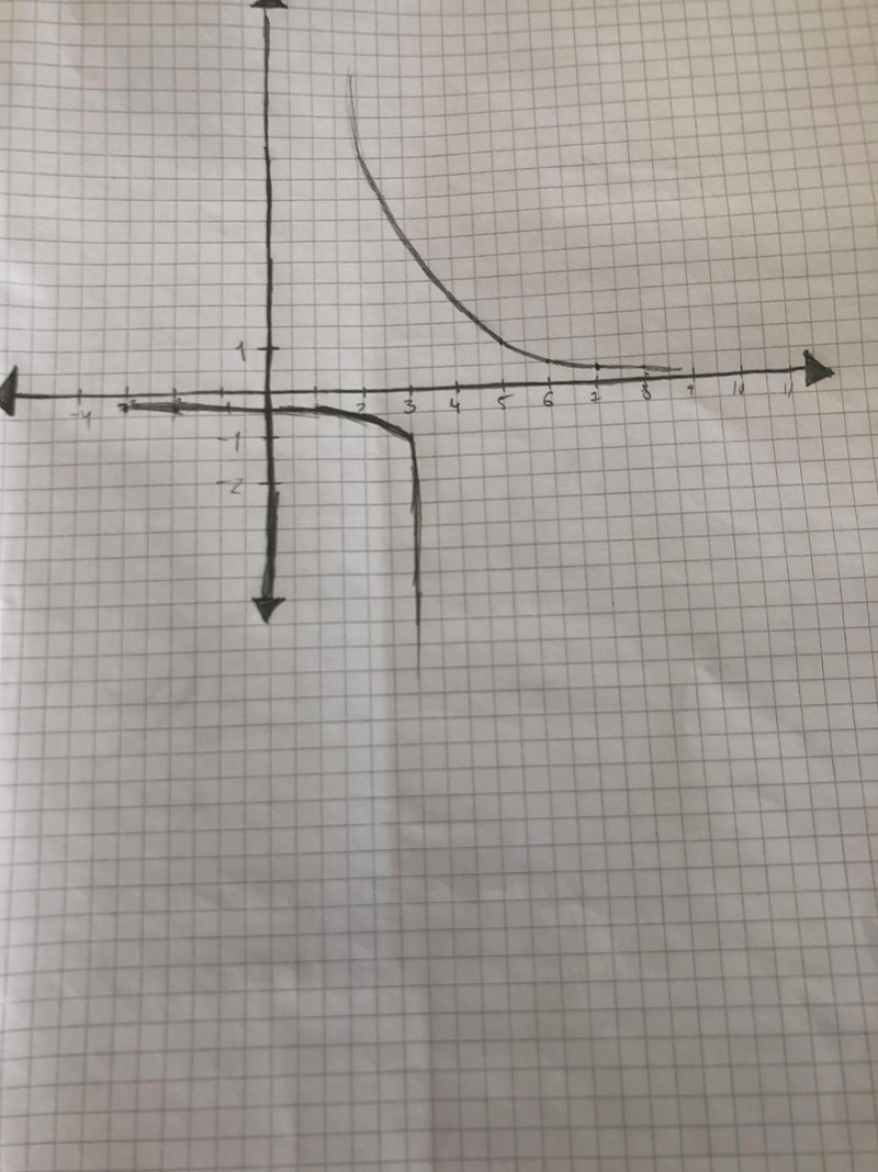 Grafen är inte rätt ritad, den övre ska bara finnas till höger om x=+4