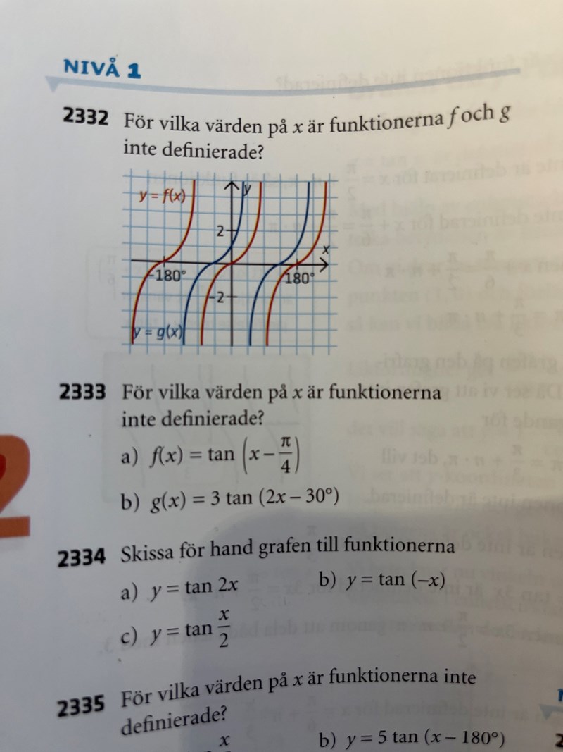 Uppgift 2332. För vilka värden på x är funktionerna f och g