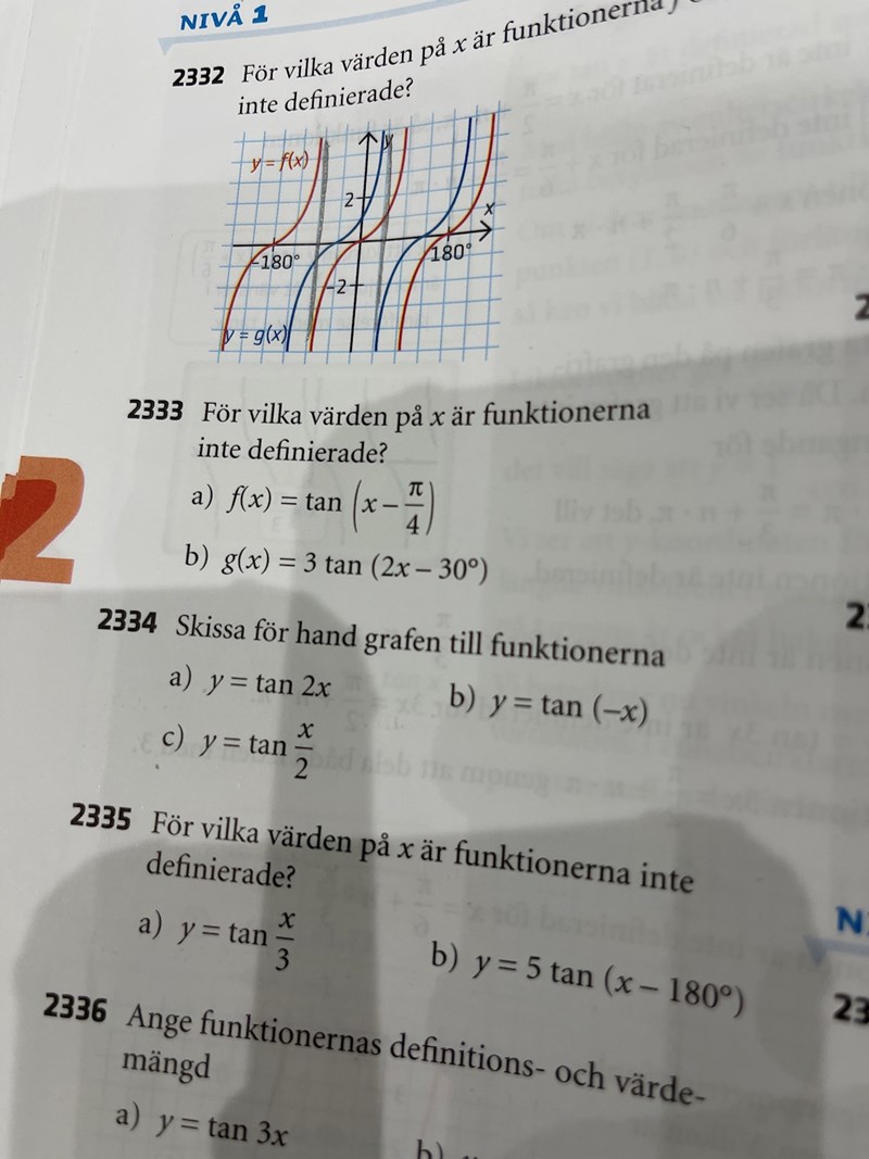 Däremot är det bra att kunna skissa grader i största allmänhet. I detta kapitel tror jag att det menar att man ska ha skapat en känsla för hur de ser ut. Men har man inte det får man ta några värden, sätt ut dem i koordinatsystemet. Sen funderar man på formen. T ex tan(x)=sin(x)/cos(x) och eftersom sin ökar och cos kan man inse att det blir en "platå" och sen en krok uppåt.