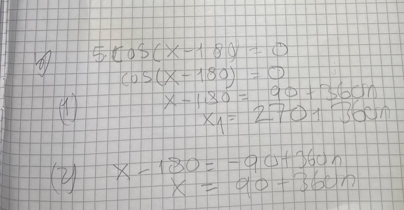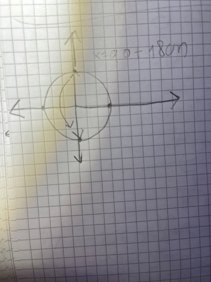 Hur kan man förenkla lösningsmängden x=90+180n? Jag testade med att ta 270-90=180.. Det skiljer sig 180 grader. Mer än så kommer jag ej vidare