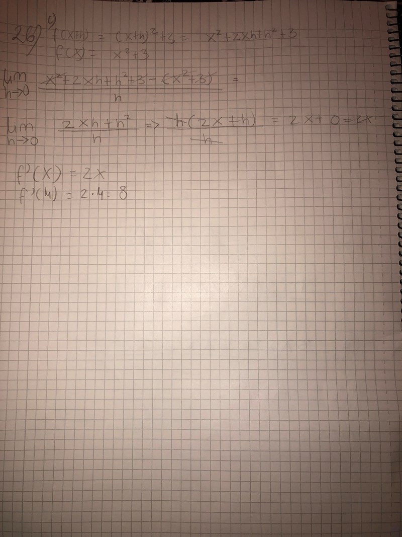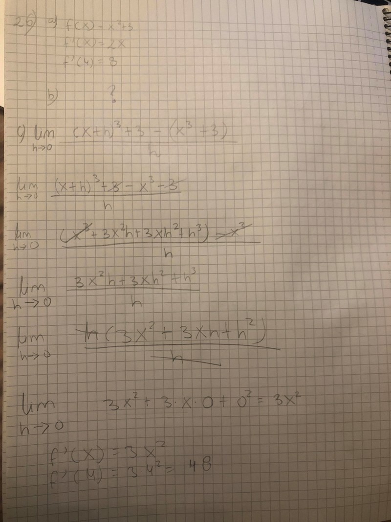 Varifrån kommer (x+h)^3? Det ska vara (x+h)^2.