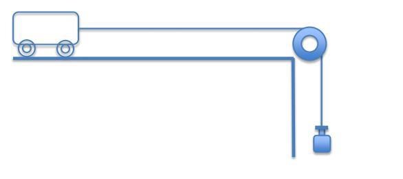 a) Min första tanke var helt enkelt att den horisontella kraften skulle motsvara den vikt som drar ner snöret. Alltså att accelerationen var i förhållande med vikten. (F=ma)