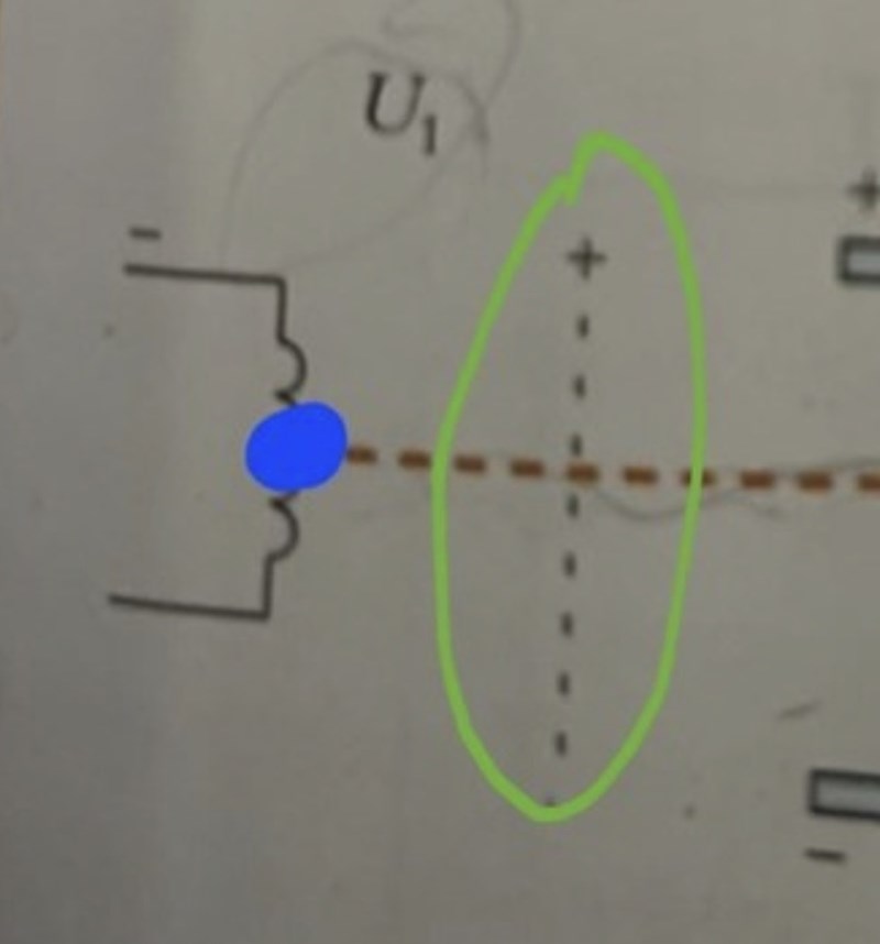en proton kommer inte att attraheras av U1 utan den stannar kvar i glödtråden (dvs den spiralformade delen av tråden längst till vänster i bilden)