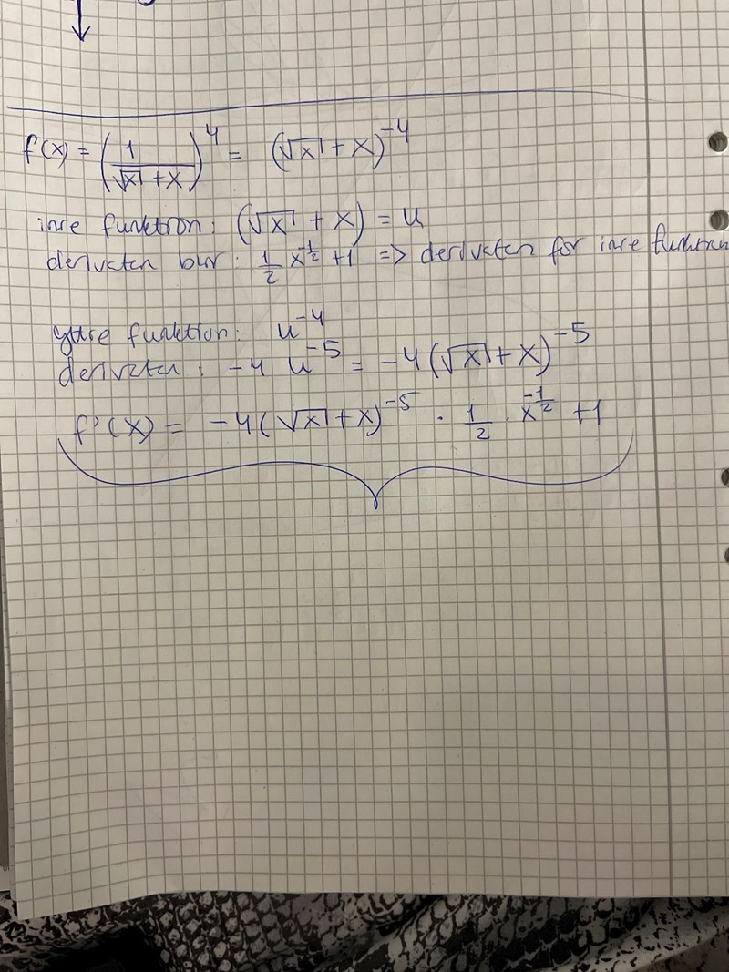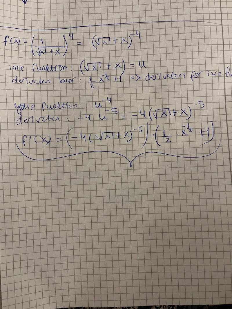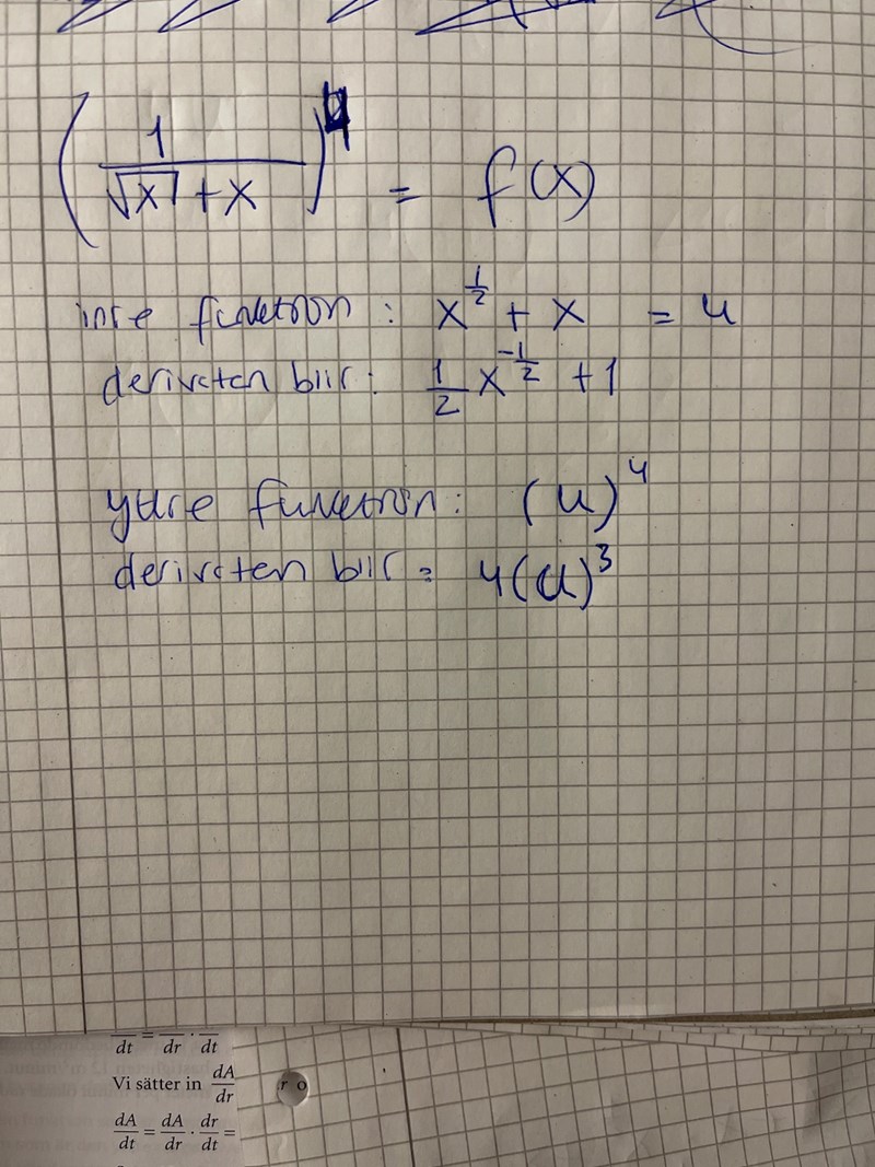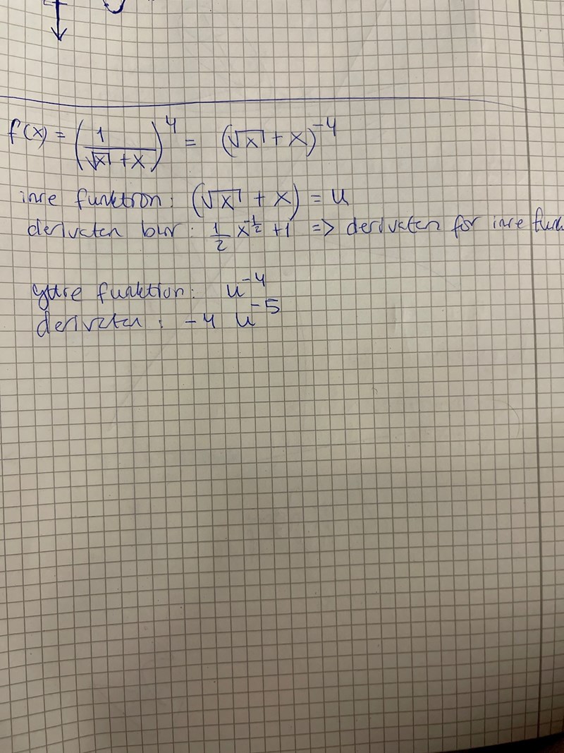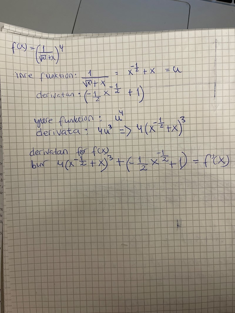 Men är det rätt att använda kvotregeln i det här fallet? Dvs när jag deriverar den inre funktionen?