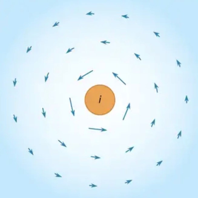 Titta på den här bilden. Varje pil visar mangnetfältets riktning i den punkt där pilen befinner sig (om strömmen går ut ur bilden).