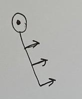Ok. Och du är med på att om du vrider handen runt ledaren så riktas fingertopparna som en annan pil.