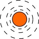 Nästa sak som man behöver veta är att de magnetiska fältlinjerna runt en ledare med likström kommer att vara koncentriska cirklar med ledaren i centrum (här har jag kopparfärgat själva ledaren och det är okänt vilken riktning strömmen har):