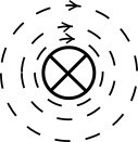 Den här symbolen betyder att strömmen går in i papperet, bort från läsaren: