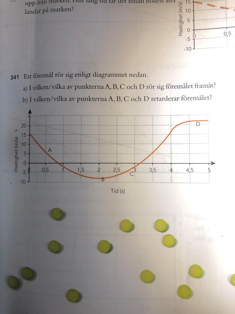 PeterG skrev:Du ser hastigheten som funktion av tiden. Hastigheten minskar ju i A, eller hur? Då innebärdet en retardation från en högre hastighet. Eller hur?