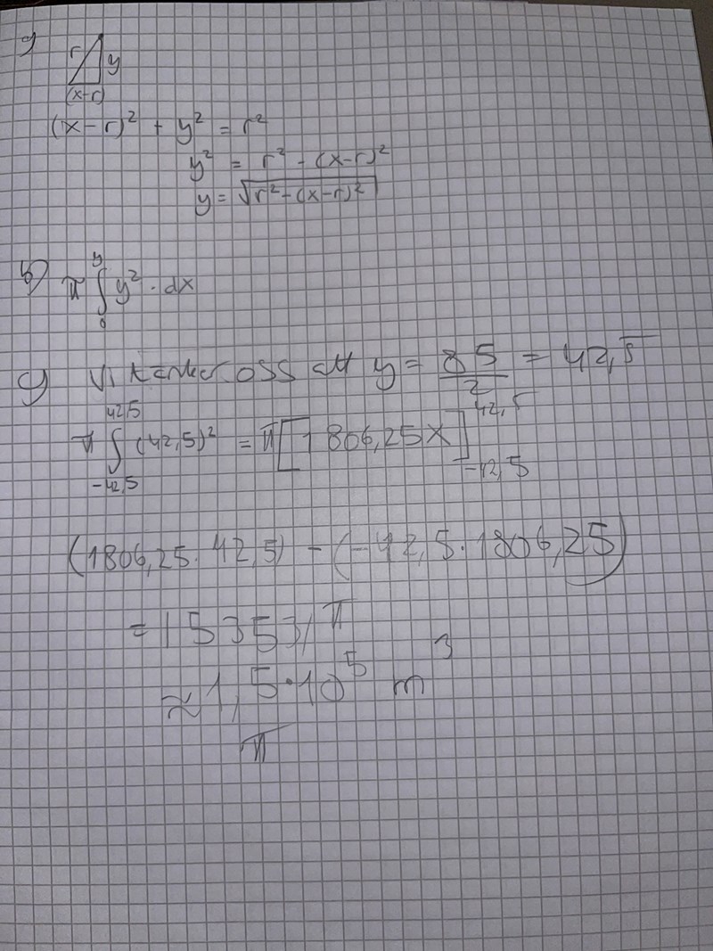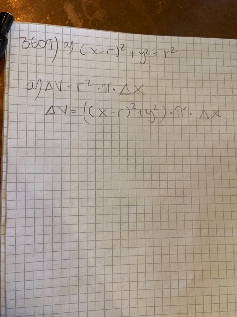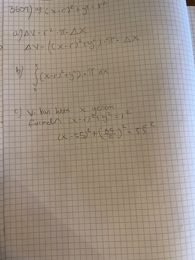 Ska delta v= (r2 -(x-r)2 ) * pi * delta x