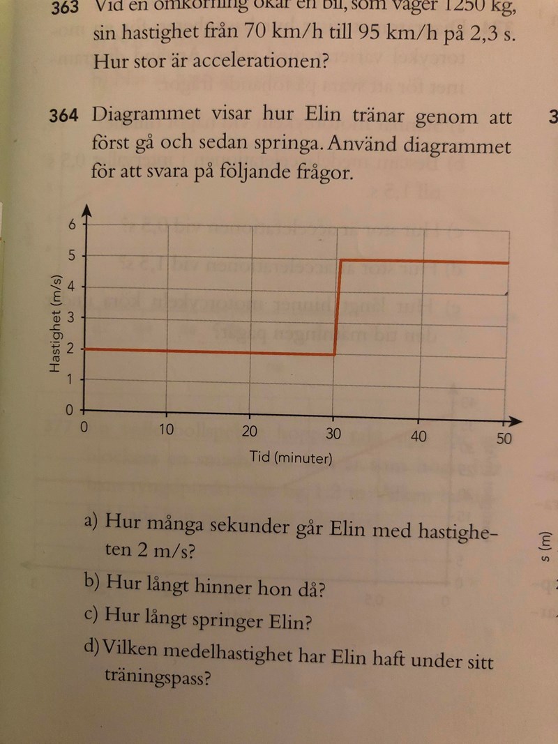 Dom frågar hur långt hon sprungit vilket hon gjort de sista 20 min. Du har räknat ut totala distansen inkl gångsträckan