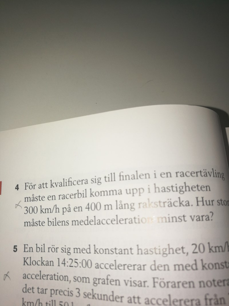 För att räkna ut meddelaccelerationen behöver man a = v/t
