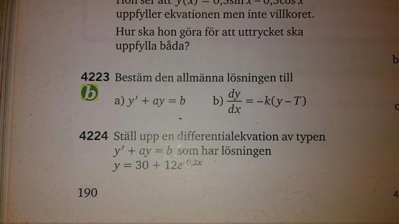 Den "totala" lösningen får du sen genom att lägga ihop den homogena lösningen med den partikulära: .