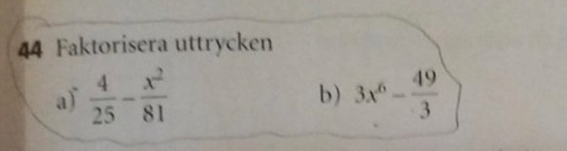 Svaret i a ska vara 1/2025 (18-5x)(18+5x) . Fattar nt hur man kmr fram till det svaret.?