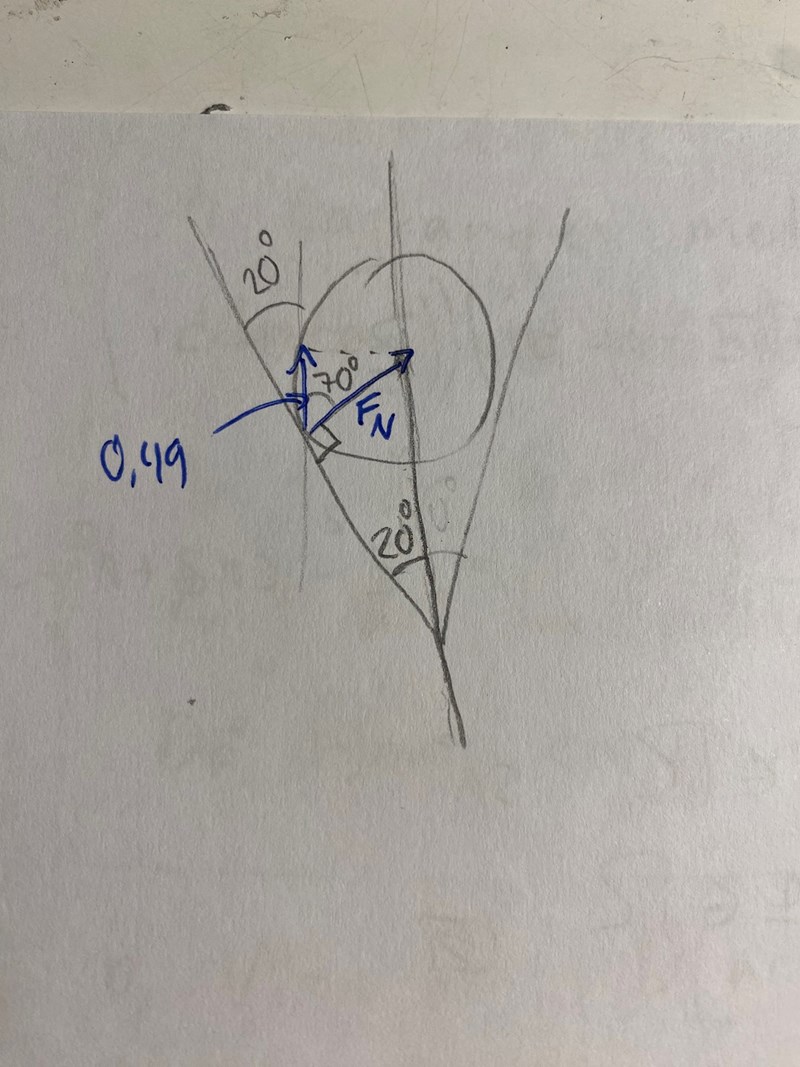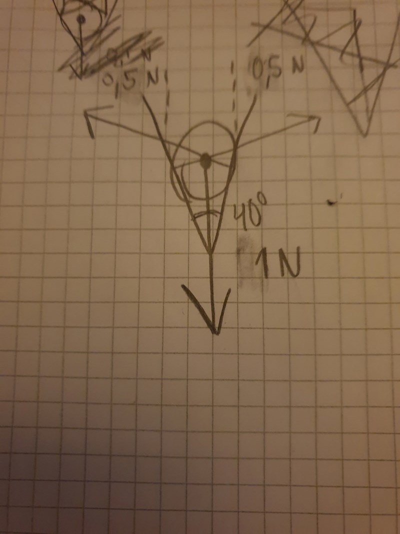mrpotatohead skrev:TeoL skrev:Ja sorry min bild är inte den bästa haha. Jag tänker mig i alla fall at X-leden inte spelar roll eftersom de tar ut varandra, och de båda normalkrafterna ger 0.5 N i Y-led var. Men hur räknar jag härifrån ut hur stora normalkrafterna är?